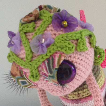 You can quite easily spend as much time just on the finishing touches as it takes for you to crochet the tail and body. Take the time to pin the facial features, leaf garland and flowers into place before hand sewing everything into place.